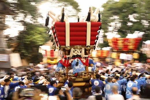 太鼓台のお祭りでは大阪府下最大級となる「秋郷祭(枚岡まつり)」が、枚岡神社で行われます。秋の収穫に感謝して行われる秋祭りで、土日に行われる前祭では大小合わせて20台以上の“ふとん太鼓台”が宮入りし、華やかで勇壮な数基の地車が街中を曳行されます。