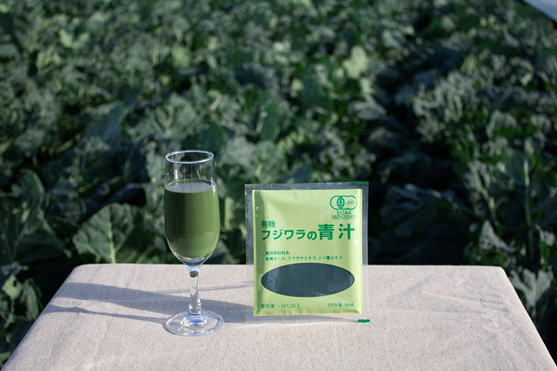 「フジワラの青汁 冷凍タイプ」は、当社から車で10分程の畑で有機栽培している“ケール”という野菜(栄養価が高くヨーロッパでは“野菜の王様”とも言われています)を原材料として使用しています。